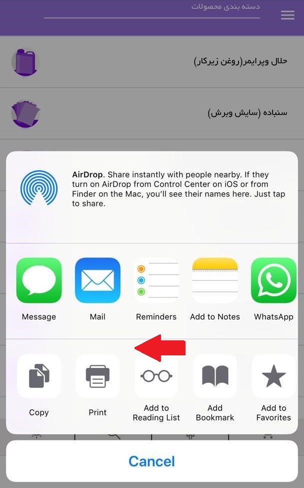 توجه : درصورتیکه این گزینه را مشاهده نمی نمایید، کافیست با حرکت انگشت، گزینه ها را به سمت چب بکشید تا این گزینه نمایان شود