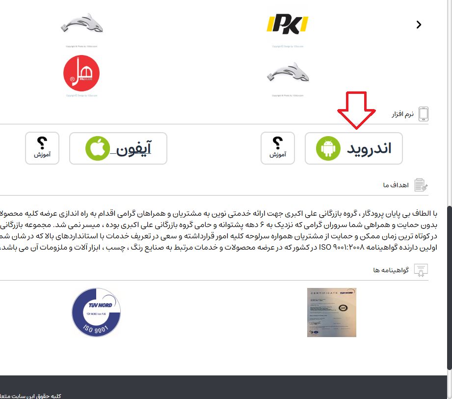 حال برای نصب نرم افزار بر روی گوشی یا تبلت خود بر روی آیکن پایین مرور گر کلیک نمایید